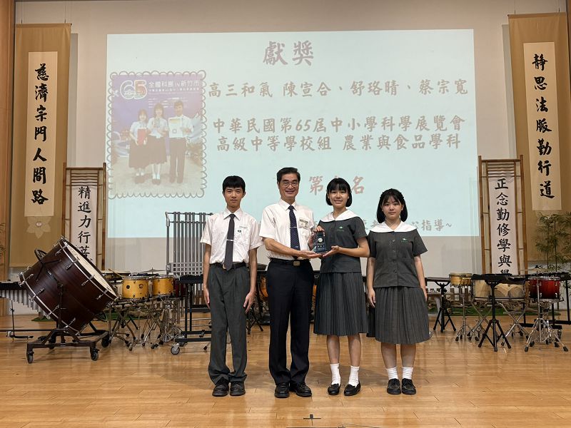 接著,頒發113學年度第二學期品德教育獎,得獎班級的導師上臺領獎。其中高二善解導師翁老師表示:「非常榮幸能獲得此獎項,這是全班同學共同努力的成果,這也激勵他們繼續加油!」本學期的新任老師們則透過司儀的介紹及PPT的特寫鏡頭,讓同學們對老師們有初步的認識,歡迎他們加入臺南慈中這個大家庭。
