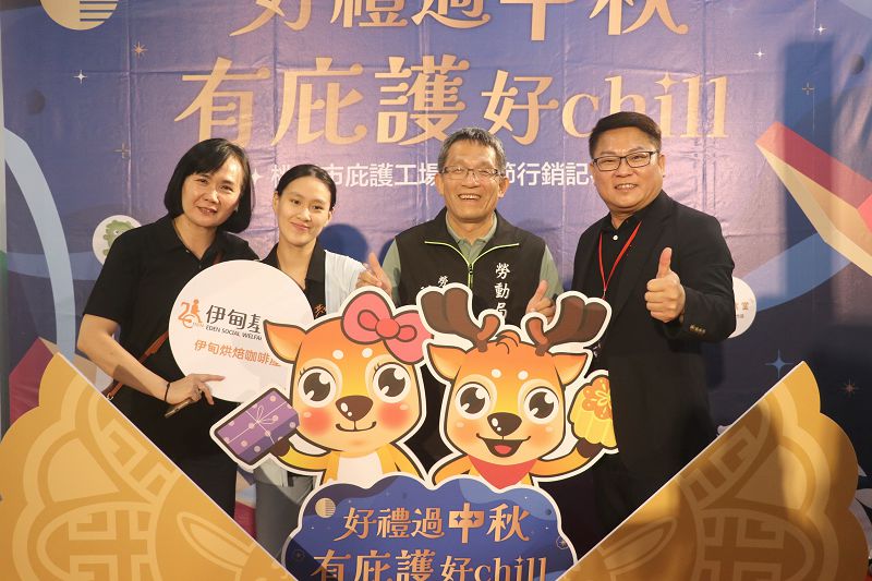 【記者鍾陽正桃園報導】桃園市政府勞動局為推廣桃園庇護工場中秋產品及服務,日前在勞教大樓一樓大廳舉辦「好禮過中秋 有庇護好chill」桃園庇護工場中秋節行銷記者會,由主秘洪清淵與勞動力發展署桃竹苗分署秘書胡伯堯、朝陽里長卓正斌、伊甸基金會庇護事業處長陳智宏及桃園庇護工場代表,共同行銷桃園庇護工場中秋產品及服務,邀請各界踴躍選購、參與滿額抽獎活動,支持身障者工作自立。