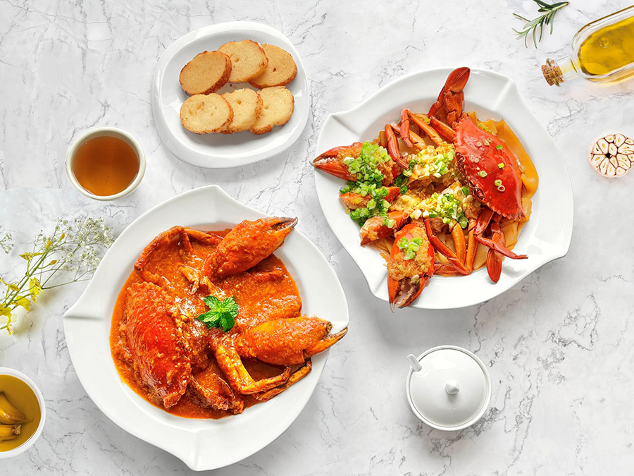 高雄翰品表示,港都茶樓於9月中旬開始,推出秋蟹料理,被譽為秋蟹之冠的紅蟳,原價1500元,現在只要680元即可享用兩隻,等於半價不到,便能大啖蟹黃。料理提供兩種經典口味,新加坡辣紅蟳,是以酸甜帶辣的特製辣醬,喚醒蟹肉鮮甜,搭配麵包,更令人食指大動。