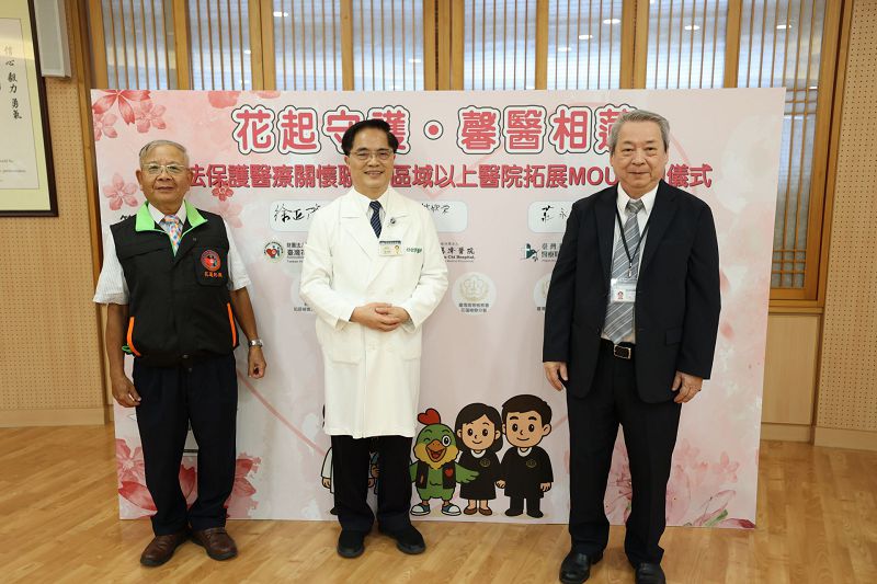 「司法保護醫療聯盟區域醫院以上拓展MOU」簽署完成,提供犯罪被害人更完善的醫療服務。左起犯罪被害人保護協會花蓮分會主任委員徐正隆、花蓮慈濟醫院林欣榮院長、門諾醫院莊永鑣院長。