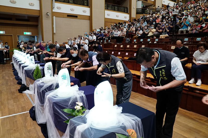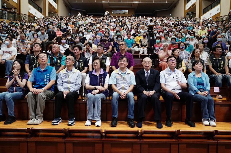 來自文化里、懷翠里、振興里、振義里、港嘴里與聯翠里等社區的里民進入園區,現場秩序井然,氣氛莊嚴而溫馨。慈濟志工以佛樂結合緩慢拉伸動作帶領會眾暖身,並引領全場合誦《無量義經·德行品》,在梵唄聲中正式展開祈福儀式。十八位里長、區長及市府代表依序上台獻花獻果,象徵眾人虔誠祈願,祈求國境安康、社會安定。