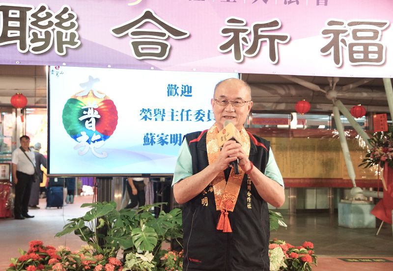 宗教祈福會榮譽主任委員蘇家明談到,在桃園市未升格前他擔任桃園市長任內,與靈鷲山心道法師結下很深的緣,要感謝心道法師的慈悲、大智慧,在桃園每年舉辦這麼大的陸海空大法會,透過宗教的儀軌、儀式,把人心的善念都找回來,今年有很多新北市的好朋友也共同來參與,正如張市長提到的,桃園是福氣滿滿的福地!他曾擔任桃園市土地公基金會的董事長,舉辦土地公文化節,致力於宗教文化的推動。他祈願藉由桃園一年一度最盛大的水陸空大法會宗教盛事,凝聚善念,讓桃園無災無難、社會安定、人民平安,讓市民更加幸福安樂!