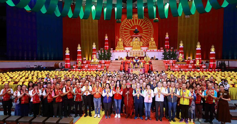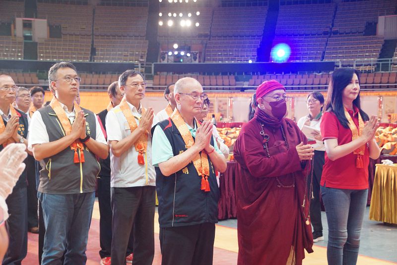 【記者徐玉英桃園報導】桃園市長張善政日前在立法委員萬美玲、市議員黃婉如、陳美梅、市府副秘書長金志聿、警察局長廖恆裕、體育局長許彥輝、民政局副局長藍品畯、桃園區長許敏松、龜山區長張嘉平、新北市民政局主任秘書莊茂坤、新北市貢寮區長柯建輝、宗教祈福會榮譽主任委員蘇家明、靈鷲山佛教基金會董事長性月法師、靈鷲山聖山寺監院懇慧法師、各宗教及宮廟代表等人陪同下,前往桃園市立體育館出席財團法人靈鷲山佛教基金會「靈鷲山第32屆水陸空大法會—宗教聯合祈福會」。