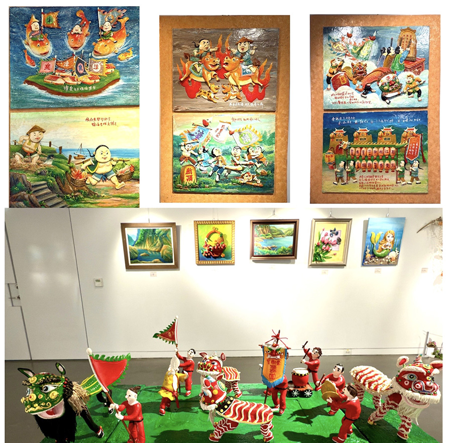 2025年「鷄籠米雕藝術學會年展」師生們以再創新的半面浮雕法和連環漫畫式構圖呈現基隆中元祭的祭典緣由與港都風情。展出作品結合鋁線、漂流木、報紙、浮球等環保素材,以及仿銅雕質感的多元創作,包含平面與立體作品共計60餘件,色彩鮮明、人物生動,完整展現米雕藝術的細膩之美與文化深度。