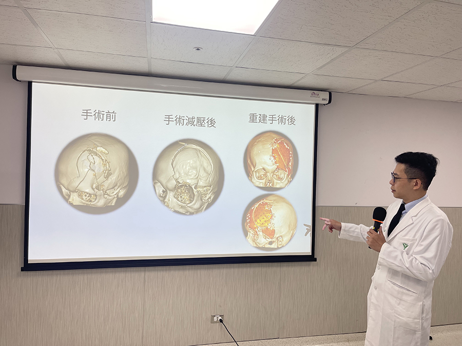 這樣的轉變,讓醫護人員與家屬都熱淚盈眶。隨著情況逐步穩定,鄭醫師也開始規劃後續的顱骨重建,並向家屬說明,可以透過電腦斷層與3D列印技術,精準還原病人受損的顱骨,並於腦部腫脹消退後進行重建手術。