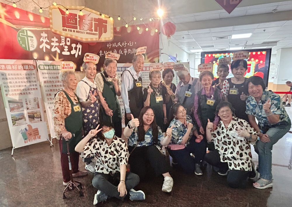 聖功醫院院長劉文欽也身著花襯衫敲下銅鑼,「咚」響亮一聲,象徵聖功夜市開張。他表示,這場活動不僅喚醒大家兒時回憶,更展現該院在失智照顧上努力的成果。聖功失智日照中心已全數額滿,還有32位長輩等待進入,顯示失智照護的迫切性。因此,聖功正積極推動「聖功長照爺奶村」的興建,讓更多失智長輩能獲得專業與友善的照顧。