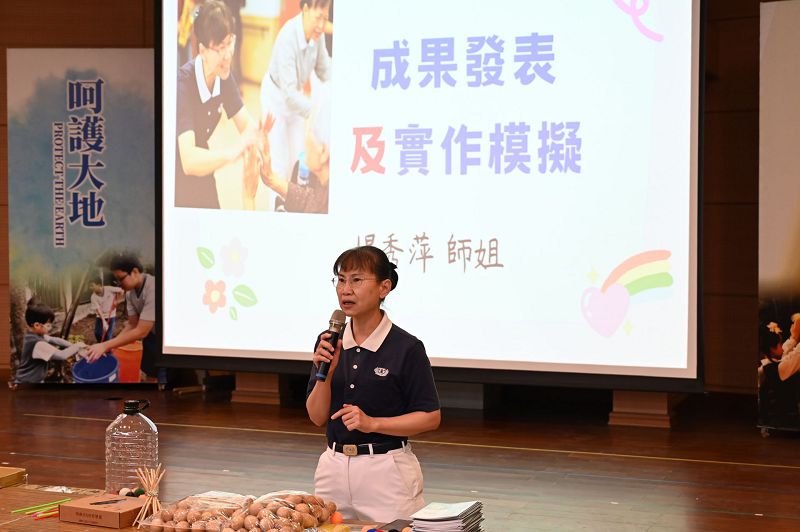 學生代表蘇愛理、李婕恩、劉家如接續以「愛的傳承與接力」經驗傳承,分享如何將屬於年輕人的熱情化作溫暖,帶到長者的生活中。 接著,范壘師兄以「你我應知事」專題課程,講解服務禮儀與安全須知──從如何稱呼長者、耐心傾聽,到避免隱私話題及注意陪伴安全。他更強調:「要用微笑和專注,讓阿公阿嬤感受到真誠的關懷。」同時引導學生運用「專注球運動」、「T型板拼圖」、「六色積木遊戲」等遊戲,結合肌力訓練與腦部活化,設計出娛樂又能延緩退化的互動遊戲。