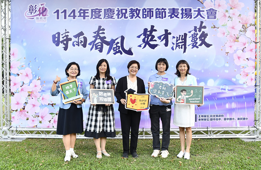 彰化縣政府日前於田中龍江館舉行「114年度慶祝教師節表揚大會」,縣長王惠美親自頒獎表揚,向全縣887位教育人員致上最誠摯的敬意。王縣長表示,教師節即將到來,首先恭賀所有老師教師節快樂,也感謝師長們對孩子無私無我的付出,老師是孩子成長路上的明燈,也是教育穩健發展的重要力量。正因為師長們用心栽培,才能讓彰化孩子獲得更好的教育,讓彰化成為夢想起飛的地方。今年本縣教育成果斐然,全國語文競賽本縣15位師生榮獲特優,涵蓋國語、台語、客語與原住民族語等領域;全國音樂、鄉土歌謠、舞蹈及戲劇競賽中,勇奪19項特優;在114年全中運,彰化代表隊更摘下18面金牌的榮耀。(圖文:彰化記者鄭惠珠)