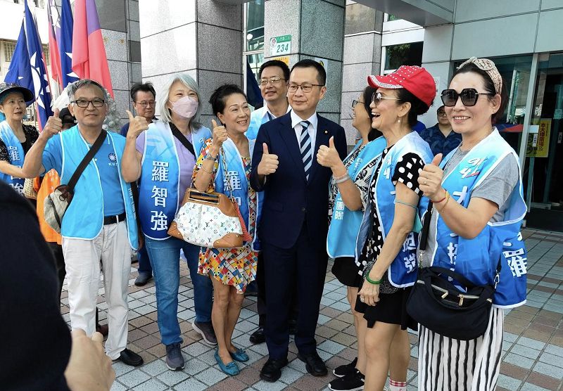 羅智強由多位國民黨立委陪同登記,羅智強說,他參選黨主席有幾個理念,首先是刀口不能向內,大家要集中力量監督民進黨,只有團結才能度過難關;可惜目前黨主席選舉中,仍出現砲口向內的現象。他絕對不刀口對內,他給予所有參選人予祝福,期許這次是堂堂正正的選舉。