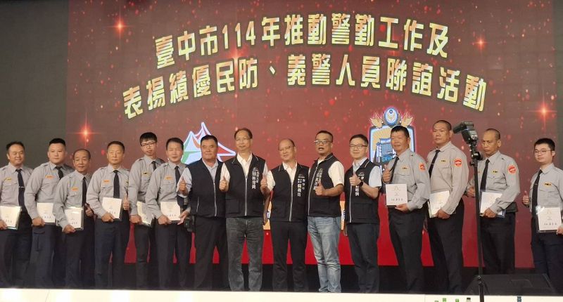 大雅警分局為感謝民防與義警人員長年協助維護治安、無怨無悔投入社會公益,日前在大雅區上野國際宴會廳舉辦「114年度推動警勤工作暨表揚績優民防、義警人員聯誼活動」,公開表揚32位資深與績優協勤人員,肯定他們在第一線默默付出的貢獻。活動當晚,臺中市政府警察局主任秘書張義昌親臨頒獎,分別頒發「內政部資深(滿20年)義警人員」4名、「服務滿25年以上退休人員」2名、「臺中市績優民防」獎牌11名、「臺中市績優義警」獎牌15名,合計32人次獲獎。 張義昌主任秘書致詞時表示,獲獎不僅是個人榮耀,更是對其年度表現的高度肯定,民防與義警人員長期協助警方維護治安,堪稱警察最堅強的後盾,使臺中市在治安與交通安全方面皆有亮眼成績,市民也能切身感受到安全感與信任感。分局長劉明興則指出,民防與義警人員多在夜間協勤,且屬無給職,需具備高度服務熱忱與良好品行,才能勝任此一任務。在警力有限的情況下,民力夥伴的投入對提升治安成效至關重要。(圖;記者馬淑娟/文:記者王雲彬)