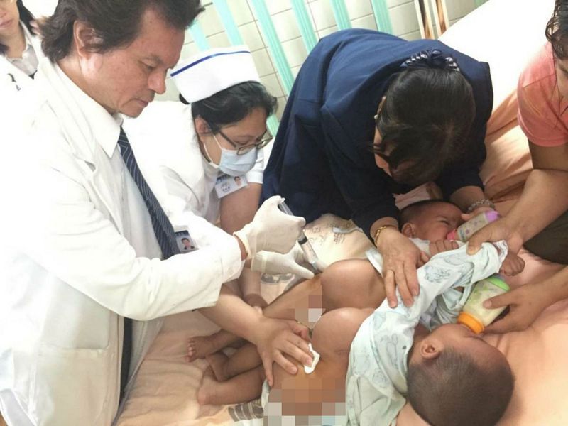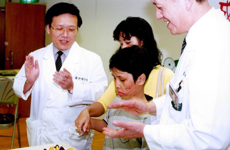 花蓮慈濟醫院整形外科李俊達主任,不僅為許多花東頭頸癌病人術後重建、開創了治療靜脈曲張的新術式;他更參與多項國際醫療個案在花蓮的跨科合作手術,包括多位顏面巨大腫瘤,以及連體嬰的分割等,圖為他為連體嬰正式分割手術前,施行養皮手術。