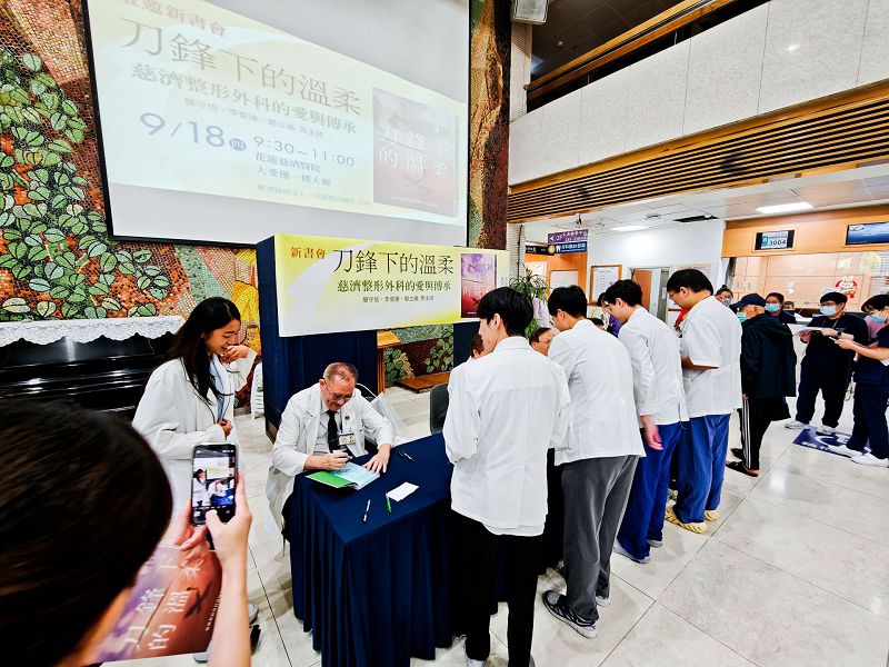 新書會尾聲獲得醫護、大眾熱烈的掌聲與迴響,會後的簽書會,連病人都來排隊簽書,畫下溫馨完美的句點,而慈濟整形外科依然繼續「堅守崗位」,守護病人!