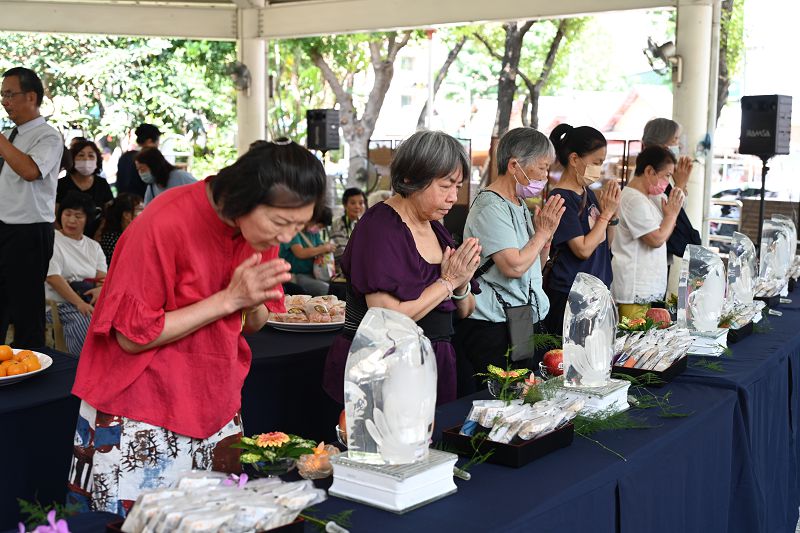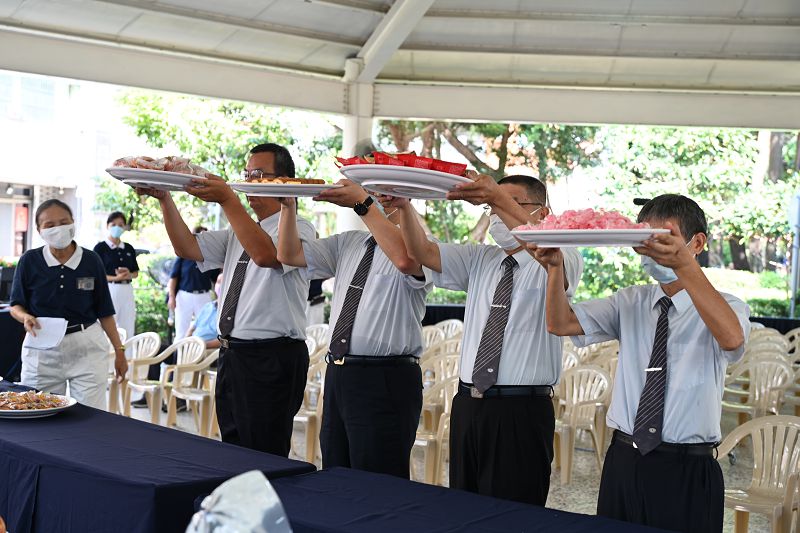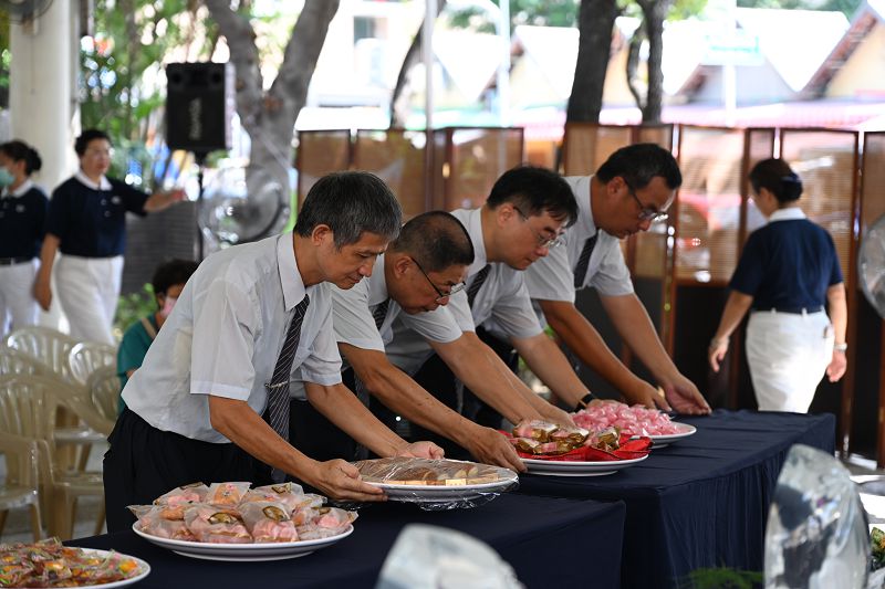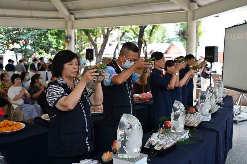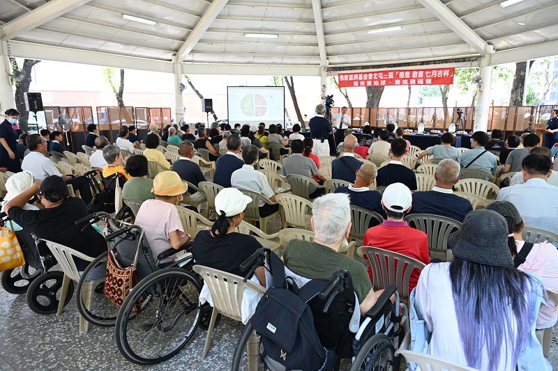 壓軸的「齋戒饗宴」色香味俱全,二百多份素齋,有主食、菜餚、糕點、水果、涼飲等,是香積志工用心烹煮的心意。從會眾的愉悅表情、一種被用心款待的尊重,傳遞出一分對地球、對生命的尊重與祝福,也讓里民感受到茹素的美好與健康。每年慈濟志工舉辦祈福會,就是要引導大眾破除農曆七月「鬼月」迷思,建立慈悲正信觀念,為社會注入更多善與和諧的力量。