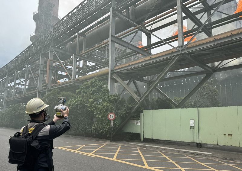 環保局AI雲端監控系統21日上午發現臨海產業園區有黃黑煙,經查來自「中鋼公司」中煤化學製程,因排風機施工過程(盲封)焦爐氣洩漏造成火災,火勢蔓延導致3號焦爐主要排氣機控制線毀損,致粗焦爐氣由爐頂之排燒塔直接排放,產生明顯粒狀物,違反空污法32條規定,將裁處中鋼10萬元至500萬元罰鍰。該局空污小組並於現場進行環境偵測,截至中午12時,全市感測器約介於2至23μg/m3之間,整體濃度已下降至環境濃度並無異常,焦爐排氣明顯減少,仍持續進行環境監測。(圖:環局提供;文:記者吳峙嵩整理)