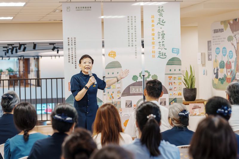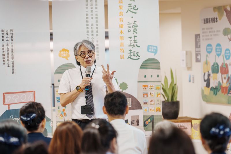 志玄文教基金會終身學習中心處長牛河山表示,學校教育有終點,但社會教育沒有盡頭,此次繪本特展正是實踐以社會教育淨化人心的理念,期許將蔬食的種子,透過閱讀深植在孩子們的心中。志玄關渡總召佘碧真也分享社區的熱情響應,未來蔬食班、氣球班的老師們都將投入,帶領親子製作蔬果汁、造型氣球等,讓孩子從動手做當中愛上蔬果。
