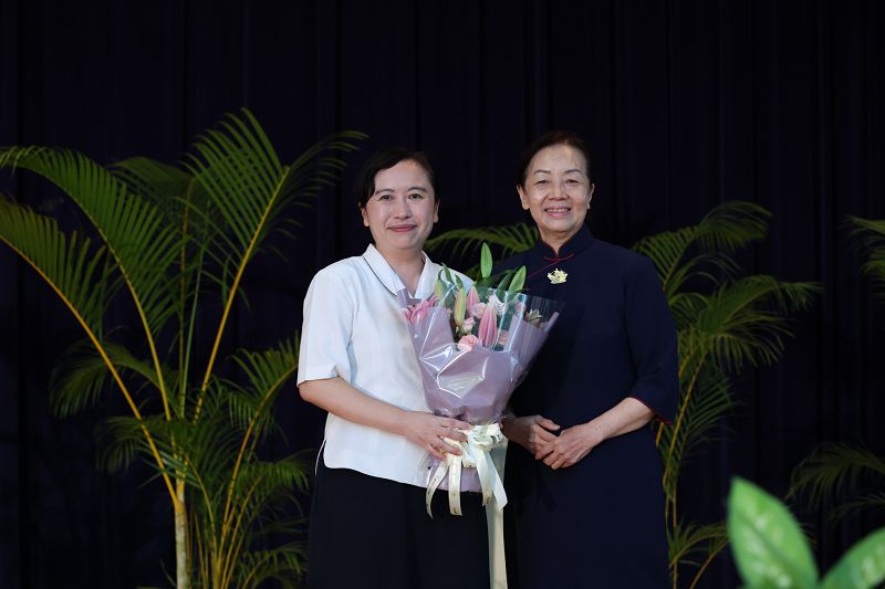 校長與若岑媽媽為服務滿十周年及二十周年堅持及用心的師長獻上祝福