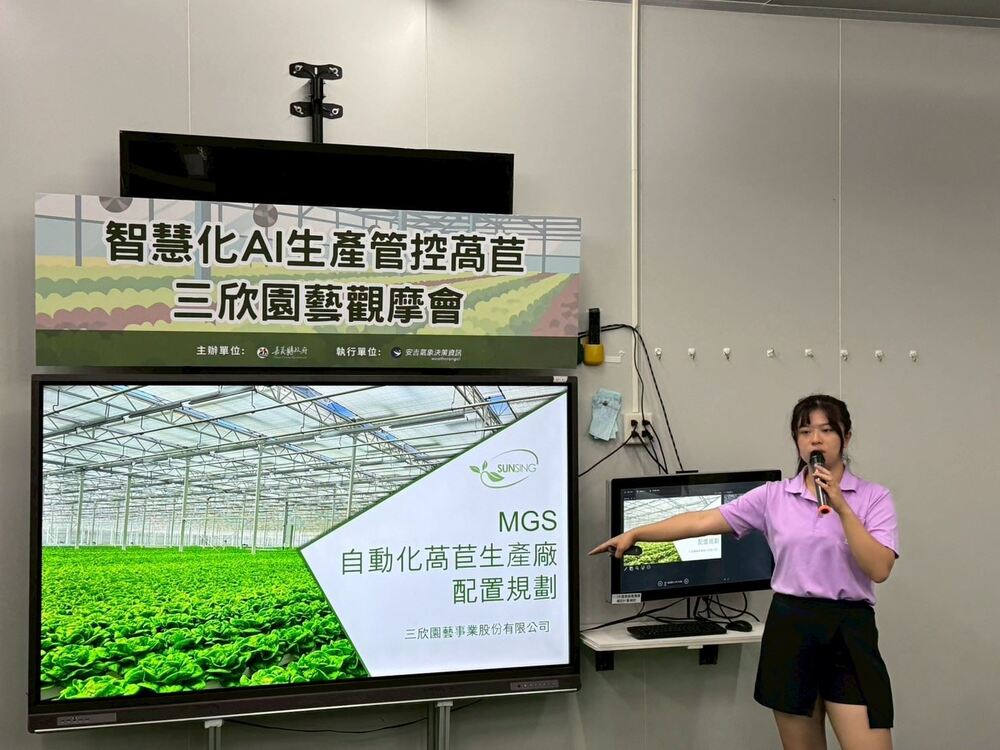 觀摩會聚焦於AI結合感測設備與即時影像系統,能夠自動辨識萵苣的生長狀態,搭配歷史數據準確預測產量及產出時間,這套系統除提升管理效率,也為市場供需調配、銷售規劃提供重要依據。