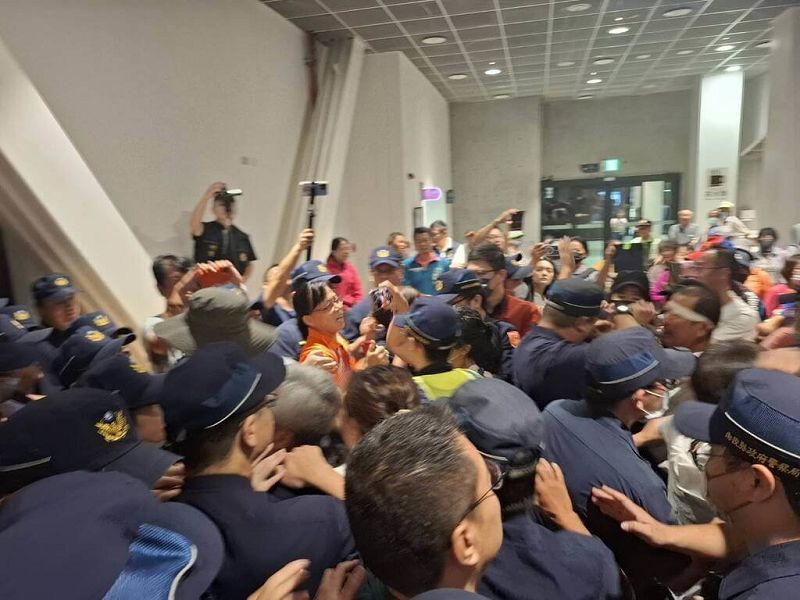 【記者陳良安南投報導】南投縣政府,規劃在名間鄉設置焚化爐,23日上午,在南投中興新村舉辦第5次的環評會議,上百位名間鄉的居民,搭乘遊覽車到現場抗議,民眾憂心衝擊在地茶產業,更不滿會議上,民眾只能報名當旁聽者,且發言三分鐘就得離席,會議室外,大批人群試圖衝破警方人牆,場面失控。