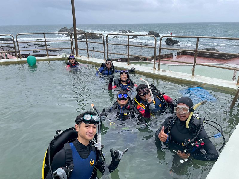 訓練地點在新北市貢寮區龍洞灣海洋公園潛水服務區,因受到颱風的外圍環流影響,訓練地點安排在戶外訓練池進行,該場域設施完善、環境安全,提供同仁最佳的學習環境與實戰演練條件。