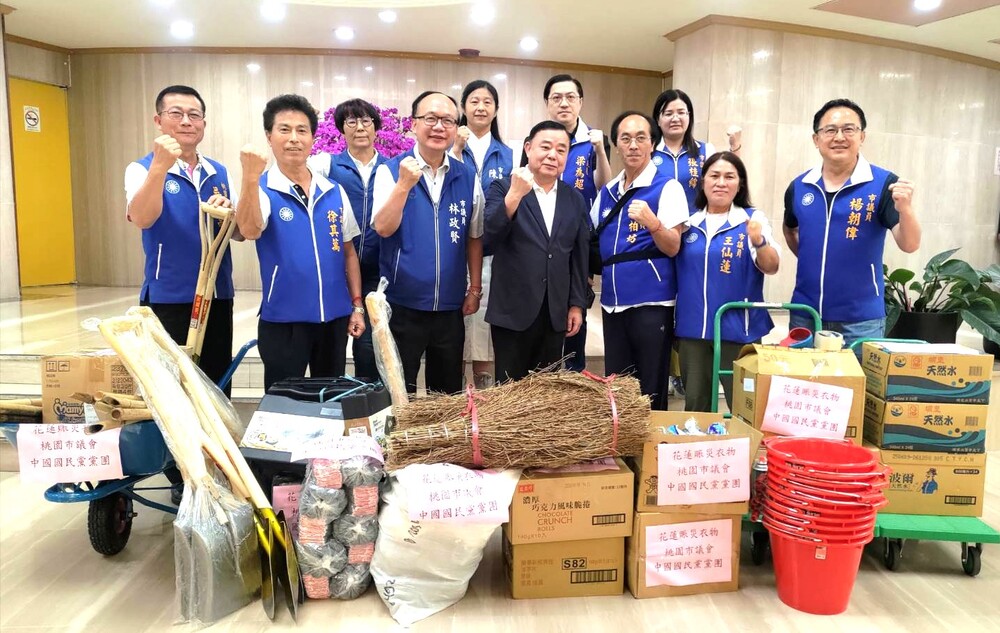 【記者吳惠民桃園報導】因應樺加沙颱風馬太鞍溪堰塞湖潰堤,造成花蓮光復鄉嚴重災情,中國國民黨團發揮人飢己飢、人溺己溺精神,經緊急購置、募集各項救災物質,26日經由議長邱奕勝、總召林政賢議員等10餘名議員見證,將賑災物資轉交給原籍花蓮光復鄉的原民議員王仙蓮送達災區。