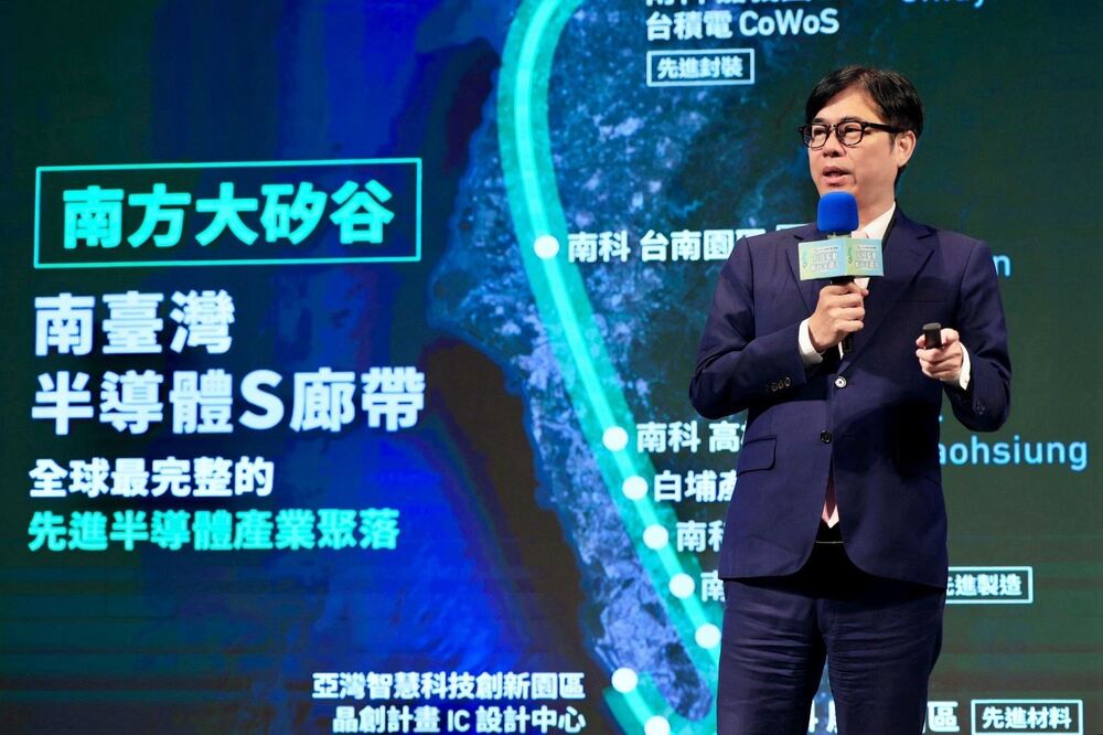 陳其邁表示,臺灣在半導體產業發展非常卓越,在全球的供應鏈佔有舉足輕重的地位,他認為有三項因素促使南方大矽谷快速崛起,第一是國家產業發展戰略清晰;第二是政府的效率,五年內推動南部半導體S廊帶,如台積電在高雄兩奈米的晶片,今年已要開始生產,可說是獨步全球的供應鏈;第三是臺灣中小企業具有創新、活力與靈活,也造就歷年許多產業的轉型,如精密機械、螺絲扣件等多項隱形冠軍。
