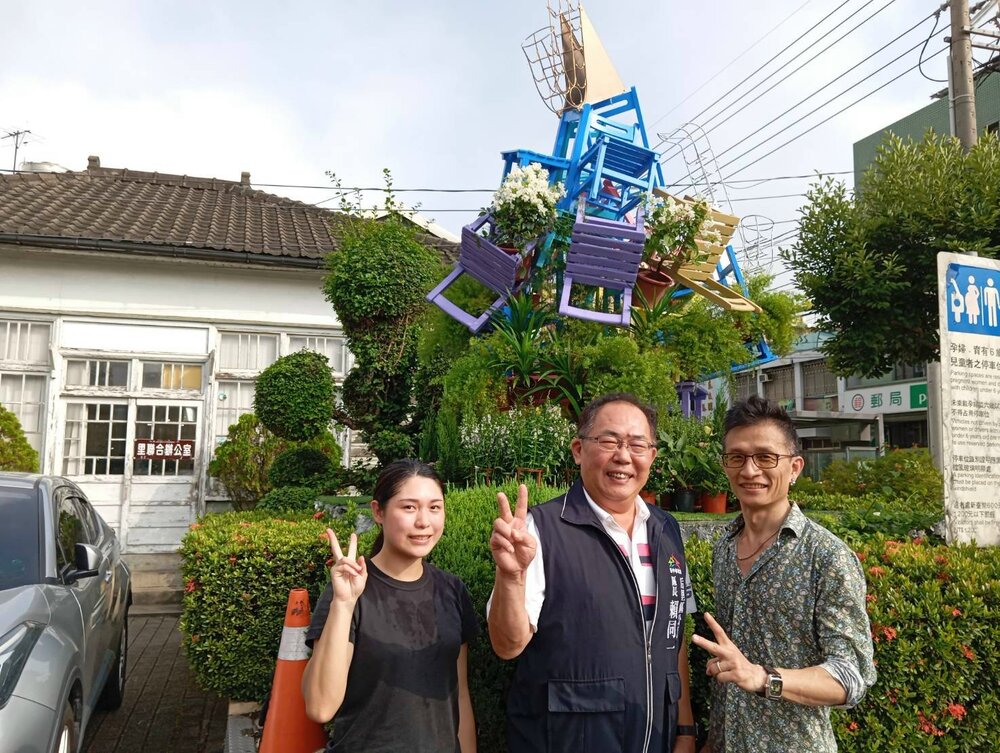 賴區長同一表示,為了落實臺中市幸福實踐手冊,構築后里幸福花鄉,讓全世界看見臺灣的花卉產業於國際上享譽盛名,特別邀請臺中市花藝設計協會謝志倫理事長率領花藝師們,先行於本所大門口平臺區公益設計創作一環保永續裝置藝術,以宣揚淨零減碳及綠能誠信與本區花卉特色。