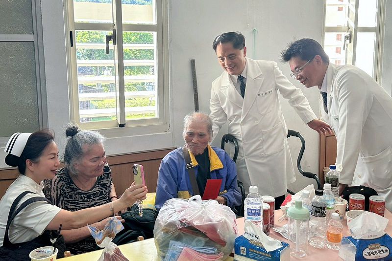 接著在巡視災區時,合九教學小組長沈孟軒透過視訊向林欣榮院長請託,協助將外公、外婆與舅舅從災民安置區接回花蓮慈院暫時安頓,林欣榮院長立刻安排,親自接送,並貼心地準備紅包為長者壓驚。護理部鍾惠君主任說:「因為他們的孩子是護理師,這份助人的功德也會回到自己的長輩身上。」