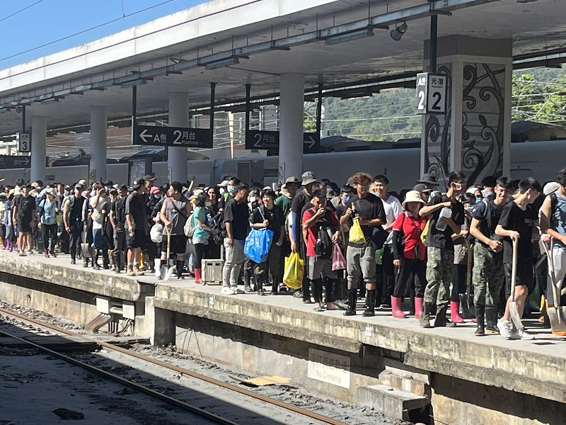 26日,慈濟在光復災區完成包括第二醫療站、行動廚房及各受災打掃熱區設置服務中心,慈濟總務處將包括救難物資、清掃器具等上萬件物資、器具加上慈濟合作共善企業捐贈的物資,透過「北運南送」方式送進光復災區以因應27到29日連續假日大清掃的龐大報名清掃的「鏟子超人」參與期前準備完成後,27日,連假第一天,總數超過五千人以上的慈濟清掃「鏟子超人」由台鐵一列列載運到光復火車站後,即在慈濟安排有序、分區有據的清掃分工下,27日連假,包括靜思精舍師父、慈濟基金會各級主管、同仁、慈濟各醫院醫護及行政同仁、慈濟教育志業慈濟大學校長師生、慈大附中、臺南慈中、慈濟人文志業、大愛感恩科技、慈濟新加坡、馬來西亞等海外同仁等志業體超過600人及超過五千位報名慈濟清掃的「鏟子超人」圓滿連假第一天的清掃勤務。