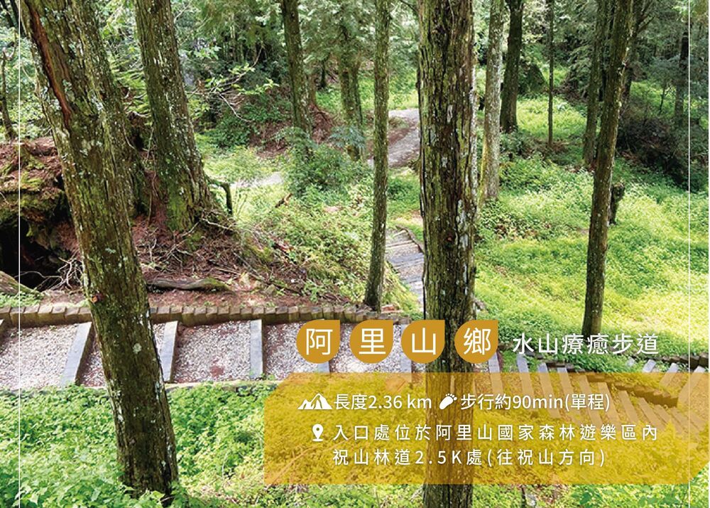 阿里山4條親子步道從高山景致到鐵道人文風情,兼具自然之美與歷史記憶。其中,位於阿里山國家森林遊樂區內的「水山療癒步道」,以靜謐幽境與巨木景觀吸引旅人造訪,沿途林蔭蓊鬱,漫步其中不僅可感受阿里山鐵道文化的獨特魅力,更可近距離一睹樹齡超過千年的水山巨木。