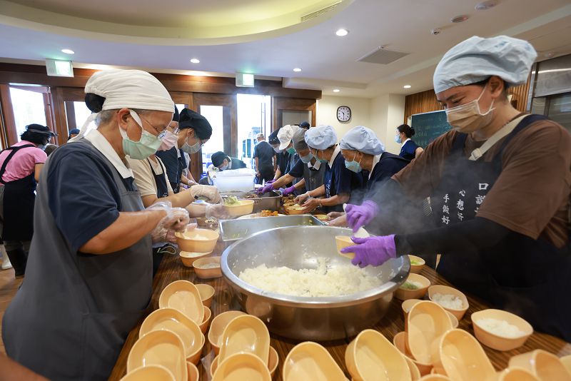 便當的色香味俱全,讓「鏟子超人」感受到志工製作餐點的用心。餐具回收後的清洗、消毒,志工更用心規畫動線,提升效率。慈濟香積志工說:「就是希望所有志工都能吃到衛生、美味的便當,沒有後顧之憂。」