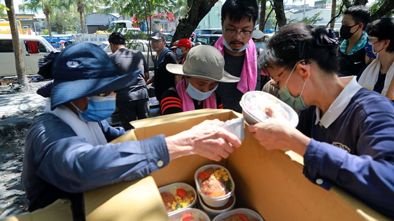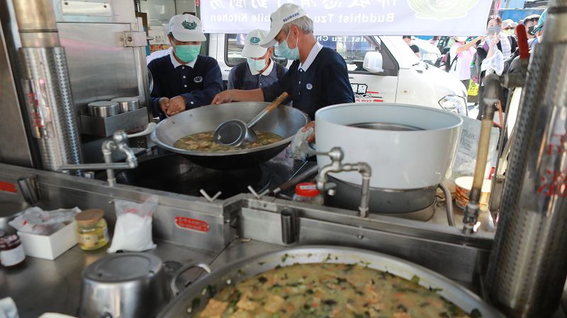 「這頓飯是我這輩子吃過最好吃的飯了。」「感謝慈濟,最好吃的粥。」