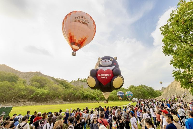 「2025高雄愛‧月熱氣球」27日在田寮月世界盛大啟航,高雄熊造型等繽紛熱氣球在惡地地形奇景襯托下升空,交織出絕美畫面,成為南台灣秋季最吸睛的觀光焦點,教師節3天連假吸引逾4萬人次國內外遊客到訪,人潮滿滿,帶動田寮在地餐廳與農產市集營業額正向成長。觀光局長高閔琳指出,今年月世界場次的「高雄熊」造型汽球驚喜亮相、重返高雄主場並安排多顆熱氣球繫留體驗,還結合地景裝置藝術、小農市集及限定商品,讓遊客體驗升空樂趣之餘,也能帶回獨特的記憶;活動10月4日至6日中秋連假將續航月世界,並於10日至12日雙十連假移師愛河登場,詳情請上「高雄旅遊網」(https://khh.travel),或追蹤官方 Facebook(https://www.facebook.com/khh.travel)與 Instagram(https://www.instagram.com/kaohsiung.bravo/)。(圖文:記者于欽智)