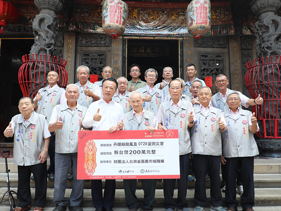 【記者謝敏政嘉義報導】丹娜絲颱風及0728豪雨重創嘉義縣,災後至今已逾兩個月,縣府依然全力投入重建工作,動員人力與資源,致力加速恢復。為協助災後重建,嘉義市城隍廟發揮信仰力量與公益精神,捐款200萬元,支持縣府救災及重建工作,期望能幫助災區居民早日恢復安定的生活。
