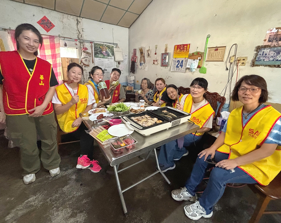 【記者雷琇雯雲林報導】象徵團圓的中秋佳節將屆,為讓獨居長輩不再孤單,華山基金會雲林區與巧新企業再度合作舉辦「企業志工日」。今年共有12位員工化身「一日孫子女」,兵分兩路送暖:一組逐戶送上中秋關懷禮,另一組則到獨老家陪伴烤肉、歡唱,營造溫馨的團圓氛圍。