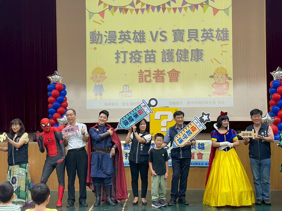 【記者彭勝郎台中報導】114年公費流感疫苗1日正式開打。台中市政府衛生局於北區健行國小舉辦記者會,結合孩子最喜愛的動漫角色,透過創意話劇宣導疫苗接種重要性,吸引師生熱情參與,場面活潑熱鬧。活動中,蜘蛛人、超級瑪利歐、奇異博士、炭治郎及白雪公主等角色輪番登場,以逗趣劇情傳達「打流感疫苗、保護自己也守護家人」的理念。透過寓教於樂的演出,孩子們在歡笑中更深入了解接種疫苗的必要性。