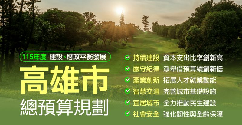 高市府表示,115年度總預算案是在符合公共債務法與財政紀律法等規範下審慎籌編,提高資源運用效益,資本支出比率創市縣合併新高,建設不停歇,市府團隊會秉持初衷,以市民優先奠定永續、韌性、轉型的基礎,讓高雄在國際競爭與城市發展的浪潮中穩健轉型邁進。