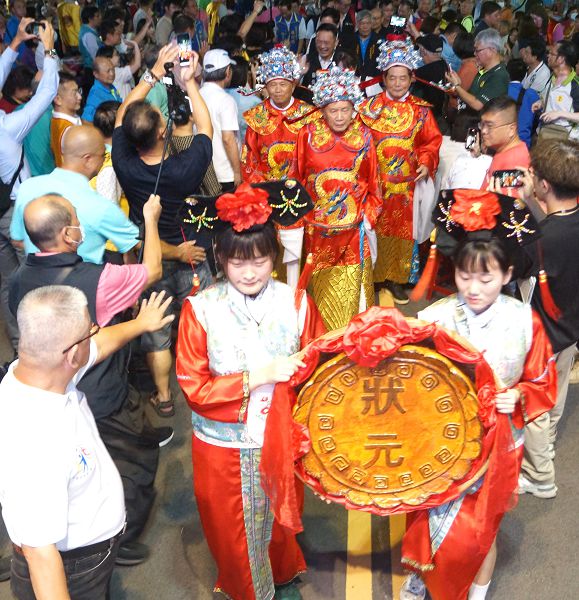 經過約2小時三輪的較量,狀元王終於產生,在歡樂擲骰拚搏歡笑聲中,南崁五福宮第十四屆中秋博餅狀元王活動圓滿閉幕。