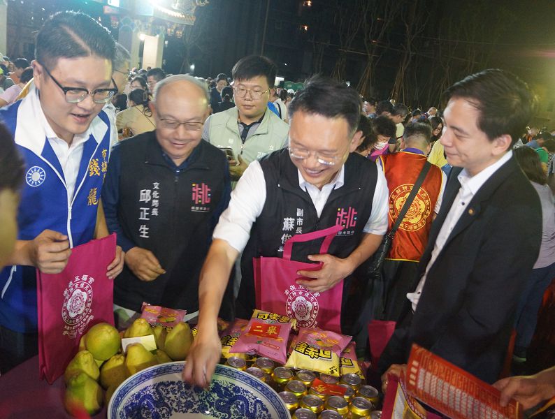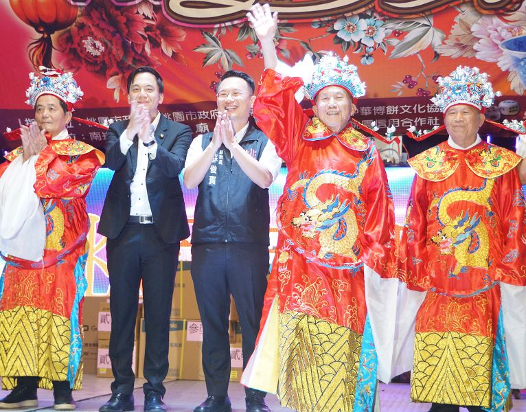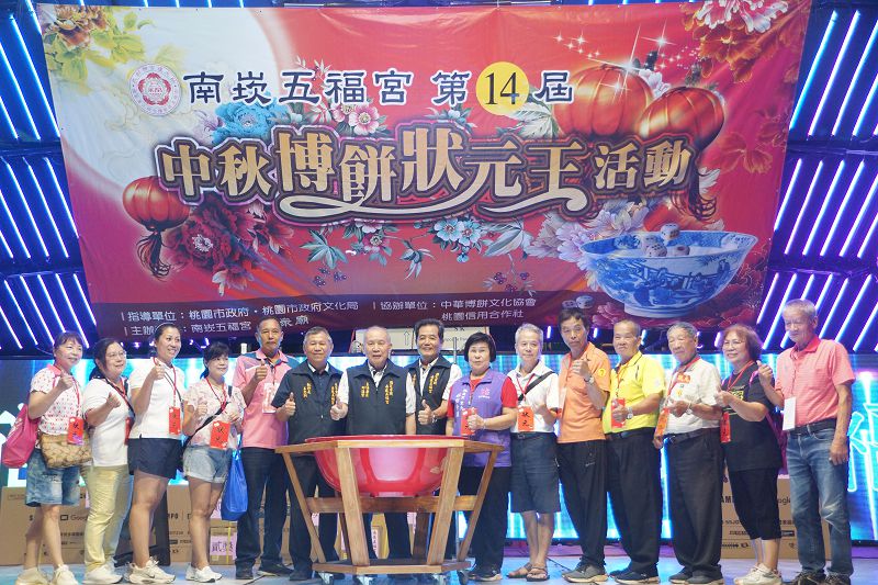 【記者吳惠民桃園報導】桃園市蘆竹南崁五福宮第十四屆「中秋博餅狀元王」活動,於10月1日晚間在該宮廟埕廣場席開120桌,隆重盛大登場,桃園市副市長蘇俊賓在立法委員牛煦庭、張雅琳、市議員錢龍、文化局長邱正生、地政局長蔡金鐘、民政局主任秘書蔡世志、蘆竹區長李岳壇、環保局環管處長張書豪、桃園市信用合作社主席蘇家明(景福宮、慈護宮副主委)、前縣議員邱垂境(豐群事業機構董事長、五福宮副主委)、南崁五福宮主任委員邱進賢、常務監事邱奕懋、執行長王忠訓等人陪同下,出席中秋博餅活動並加入與民同樂!