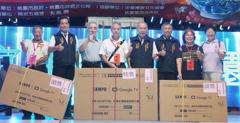 南崁五福宮2025第十四屆中秋博餅狀元王得獎名單如下:特獎:陳德傳獨得55吋電視機;頭獎:蔡有宏、潘秋季各獲得43吋電視機;二獎:蔡朝枝、陳佩瑀、余雅倩各獲得大同電鍋一台;三獎:田淑惠、陳春欽、林翁秀蘭、蘇登連、林慶德、李梅花各獲得國際牌電風扇一台。(圖:記者徐玉英攝)