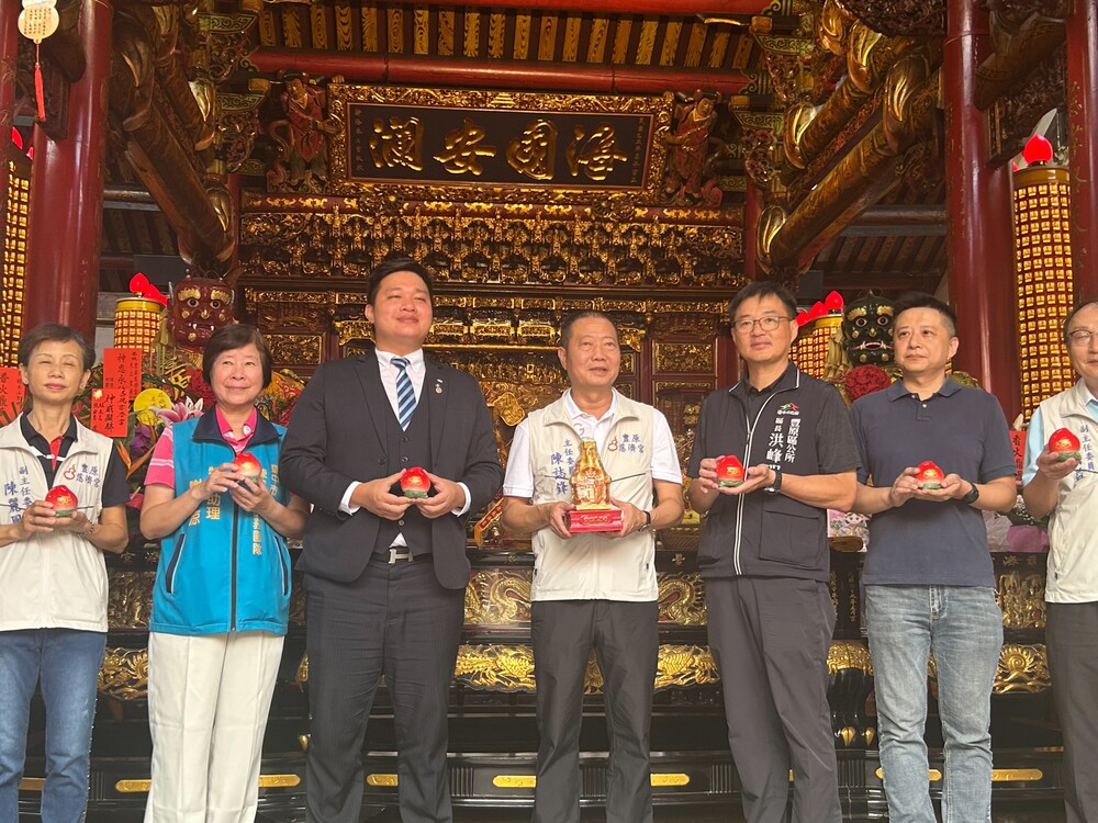 參加豐原媽祖擲筊大賽前五十名報名者,即可獲得歡欣討喜的福桃滿堂紀念版陶瓷文創禮品及百年大醮紀念錢母金幣各乙組。