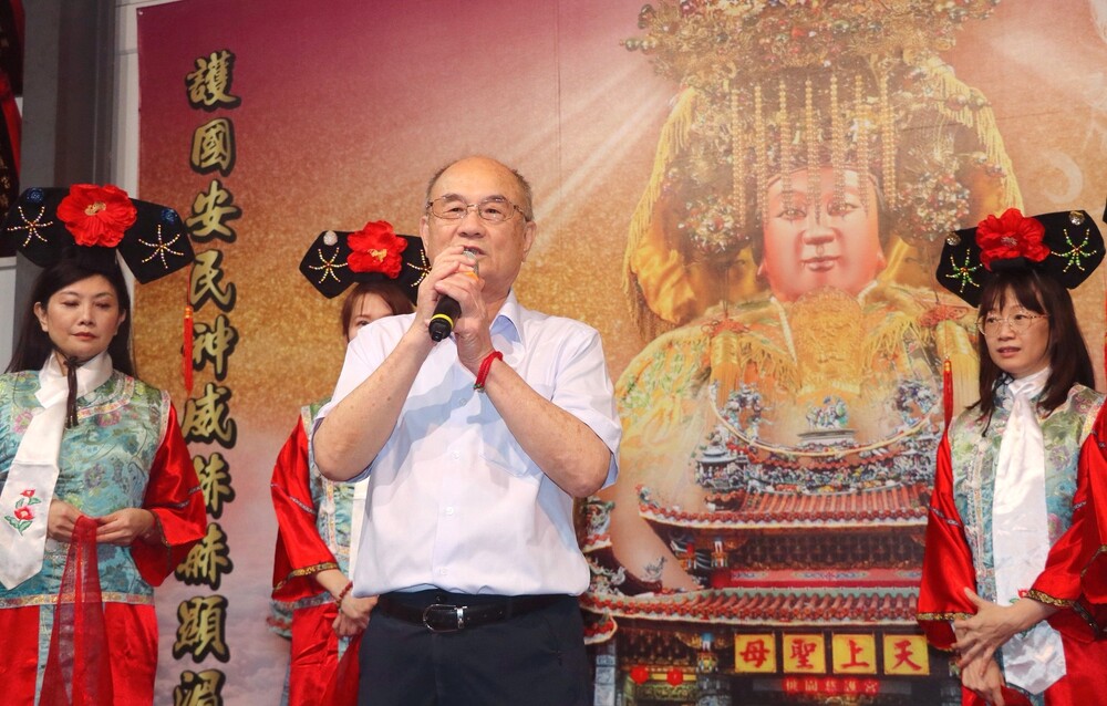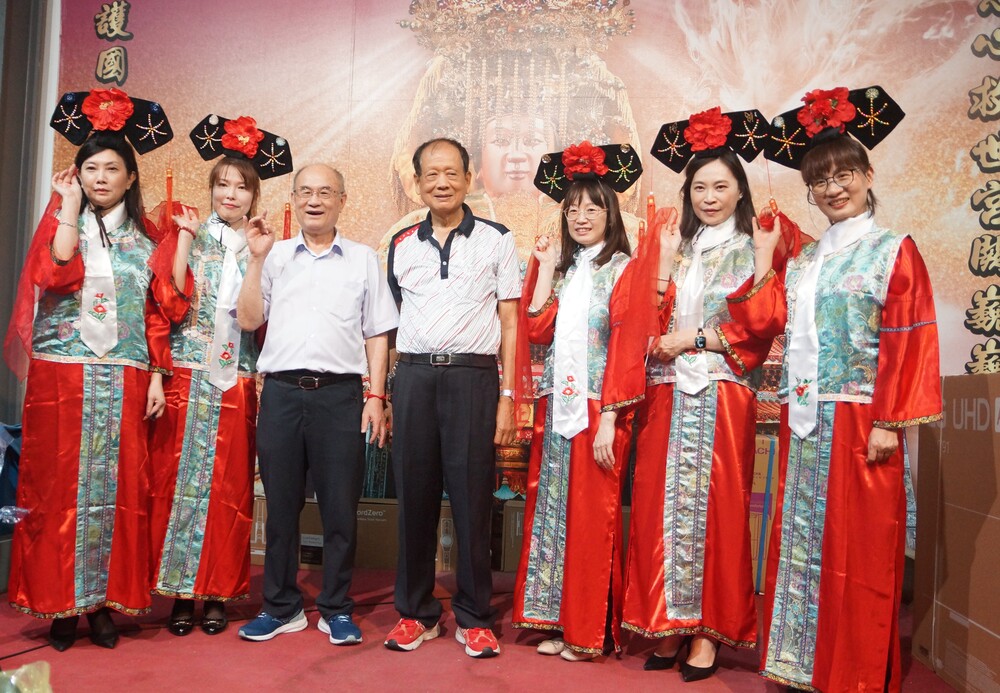 圖2:5位穿著格格裝美女與桃園信用合作社理事主席蘇家明(左三)、前慈護宮主委吳正宗(左四)合影。(圖:記者徐玉英攝)