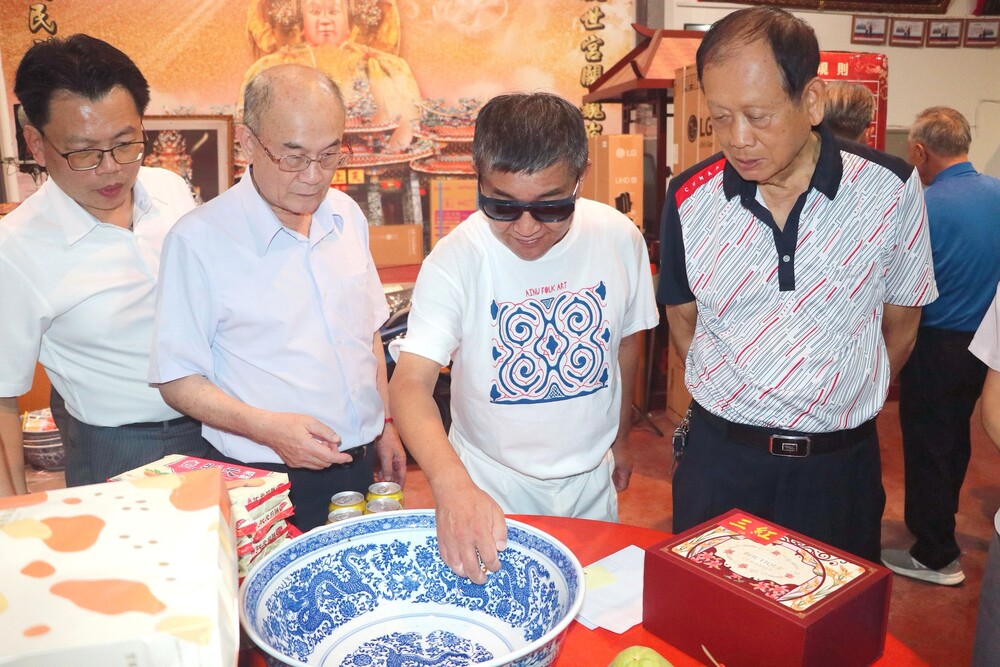 圖3:桃園信用合作社理事主席蘇家明(左二)與桃園慈護宮主委簡征潭(右二)、前慈護宮主委吳正宗(右一)也參與擲骰同樂!(圖:記者鍾陽正攝)
