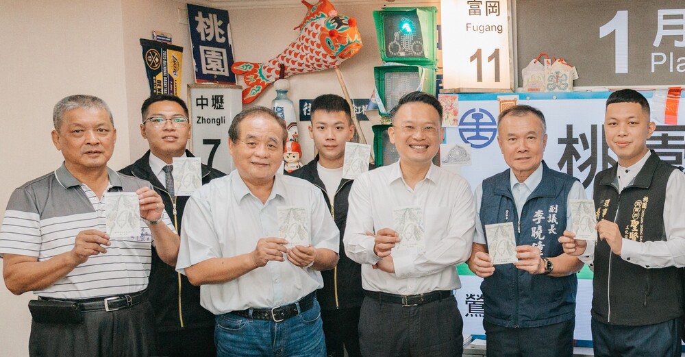 圖2:桃園市議會副議長李曉鐘(前右二)、全國村里長聯誼總會創會長郭雲輝(前左二)、聖賢宮理事長楊承峻(前右一)等人與桃園副市長蘇俊賓(前左三)合影。
