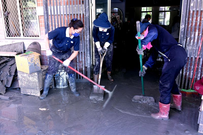 慈濟基金會表示,連續假日期間,慈濟每日投入人力進入災區復原清掃,也提供清掃志工所需的物資與飲食。慈濟將持續關懷受災鄉親,盼望災區盡速復原,學子安心就學。