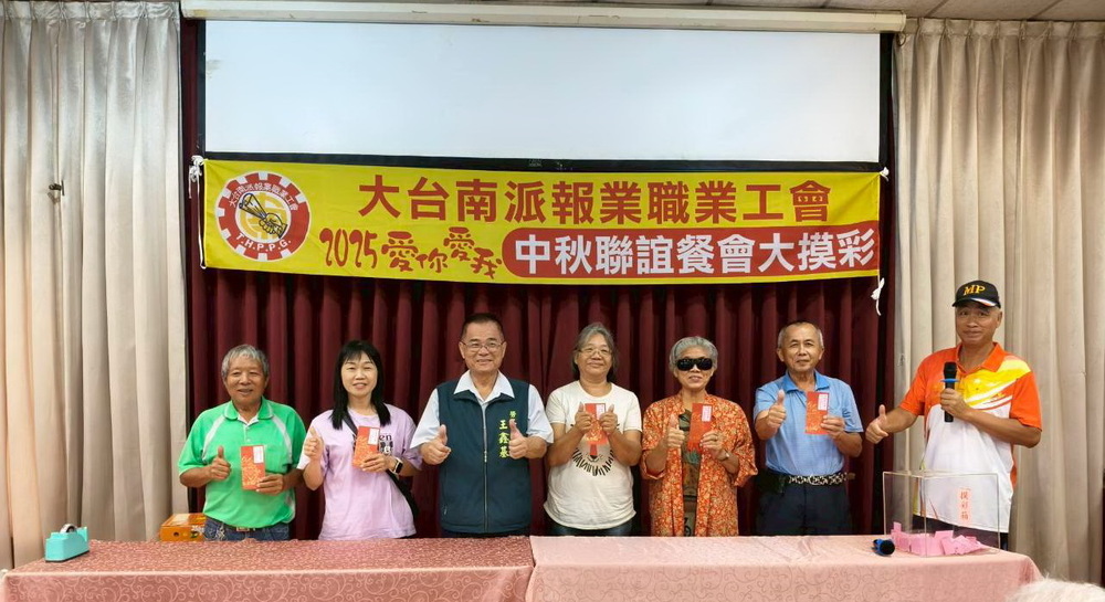 【記者黃永豐台南報導】送報生披星戴月,風雨無阻,全年無休!大台南派報業職業工會昨天利用中秋節連假在田媽媽鵝肉美食餐廳,舉辦「2025愛你愛我中秋親子聯誼大摸彩活動,包括立委郭國文、市議員陳昆和、謝舒凡、楊中成、尤榮智、民政局長姜淋煌、勞工局長王鑫基、農業局長李芳林、保育科長朱健明、市場處代理處長林士群、前台南市副市長顏純左、國民黨台南市黨部書記長洪菽珮等,為200多位大台南地區的送報人員加油打氣,場面熱烈溫馨,提前歡度中秋佳節。