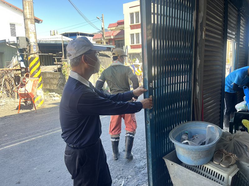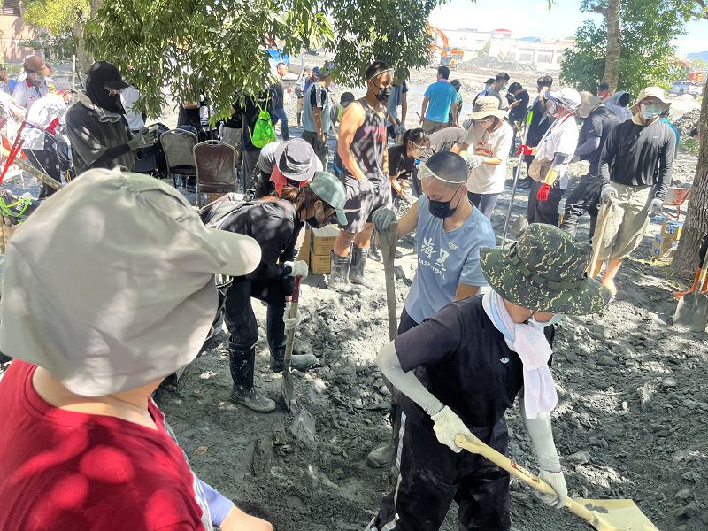 顏博文執行長於10月4日前往已清除家戶污泥的災區,了解災後復原協助的現場狀況時,不斷有從台灣各地到光復災區清掃的年輕人向顏博文執行長感恩問好,顏博文執行長也感恩年輕人能利用假期做善事的善行,其中詢問來自高雄、現年28歲的清掃志工呂俊輝,目前是服務於臺灣高鐵公司,呂俊輝說,賑災過程中,鏟土的工作比想像中更艱難,需要面臨天氣悶熱、地面泥濘,淤泥也需要花費許多力氣才挖的動!更需要時常調節體力並適時補充能量。