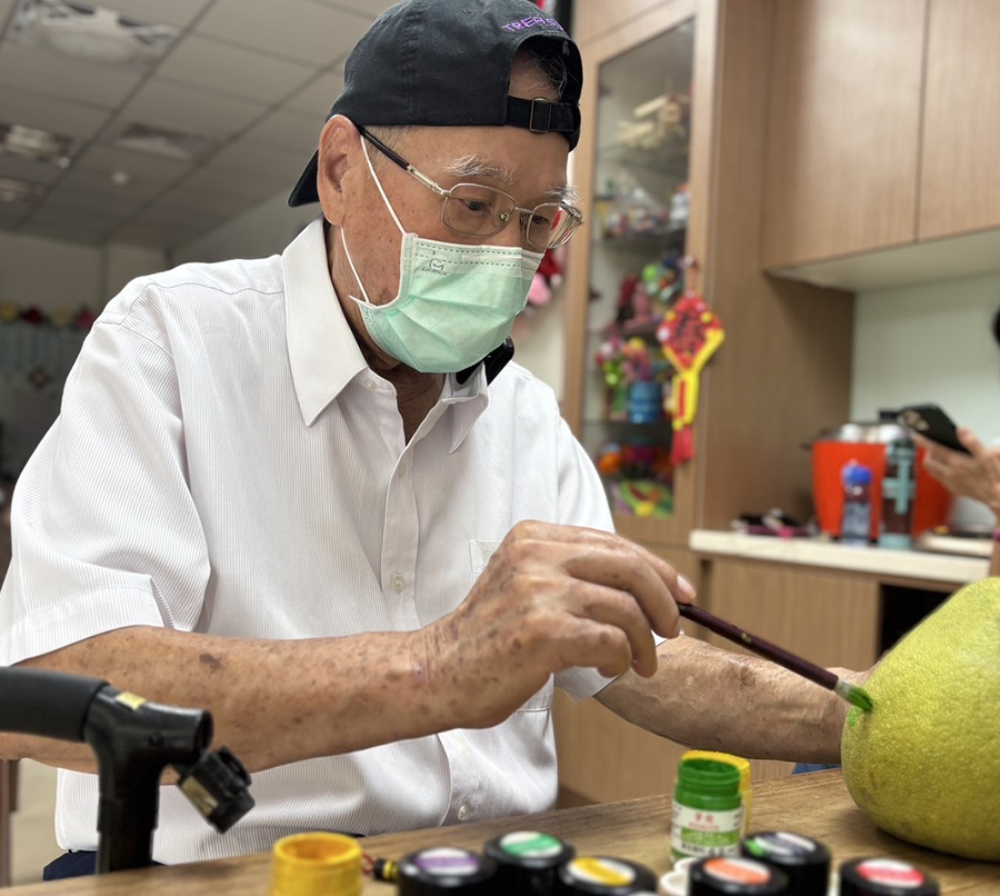 【記者徐玉英桃園報導】中秋佳節象徵團圓與祝福,今年臺北榮民總醫院桃園分院巷弄長照站「長樂居」的長輩們,用雙手與愛心,親手製作水果果凍月餅,並彩繪柚子,將滿滿心意送給家人與社區鄰里。