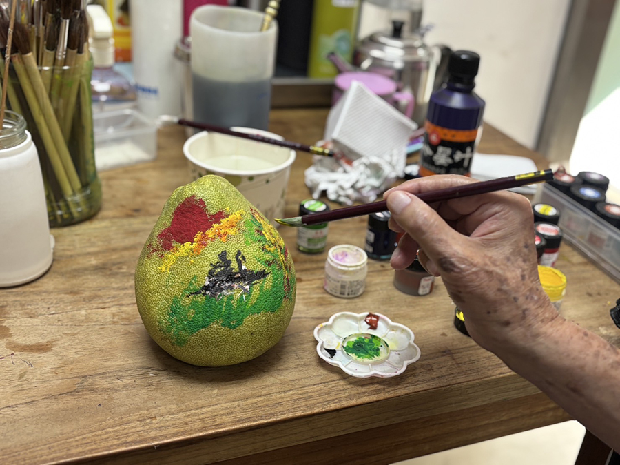 北榮桃園分院表示,晶瑩剔透的果凍月餅,不僅外觀色彩繽紛、精緻美麗,更蘊含長輩細膩的用心與祝福。高齡94歲的謝伯伯,一筆一畫在柚子上描繪色彩,一顆顆彩繪柚子承載著團圓與祝福,溫暖了在場每個人的心。今年的中秋節,因為這份手作的心意而格外特別。
