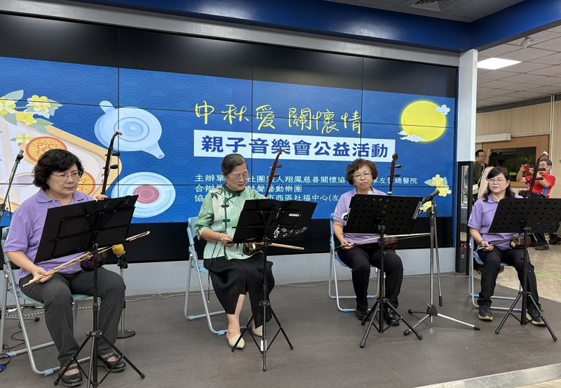 社團法人翔鳳慈善關懷協會理事長陳秀鳳的個展「秀筆鳳舞」彩墨創作巡迴展,已在國軍左營總醫院展出,適逢中秋節,翔鳳協會力邀琴聲藝動愛樂團,以各種不同樂器,像是二胡、空靈鼓、胡蘆絲笛、口琴和吉他等,演奏與月亮有關的動人曲子。