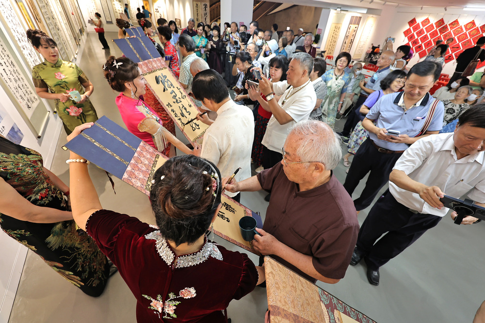 基隆市立美術館301展廳5日隆重開幕,群賢雅集,基隆市副市長邱佩琳肯定書道會自1933年創立以來,92年的深耕與傳承,市府將推動書法夏令營,讓書法教育向下扎根。議長童子瑋表示,未來議會大廳也將是書畫很棒的展覽場域。